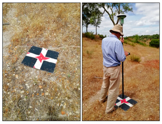 To ensure an accurate rectification of the UAV images, five ground control points (GCPs), four at the corners and one in the middle of each test site, were designed specifically for that purpose with 50 × 50 cm in size (