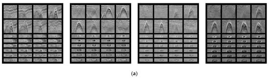 Once 3D GPR data are obtained from a target area with various underground objects, the corresponding 2D GPR grid images comprised of the B- and C-scan images can be reconstructed for network training and testing as displayed in Figure 1 []. Figure 1a shows the representative 2D grid image of the cavity case, which have parabola and circle features that can be observed on the B- and C-scan images, respectively. The similar features are also revealed in the manhole case of Figure 1b, although they have a different pattern and amplitude. On the other hand, no significant features appear in the subsoil background case as shown in Figure 1c, because there is no abrupt permittivity change. Thanks to these distinguishable features, underground objects can be classified well with the conventional CNNs. However, the underground gravel case of Figure 1d shows the similar morphological GPR B- and C-scan features as the cavity ones, which may cause false alarms. Thus, UcNet is newly proposed to minimize the false alarms.