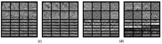 Representative training 2D GPR grid images of a (a) cavity, (b) manhole, (c) subsoil background, and (d) gravel.
