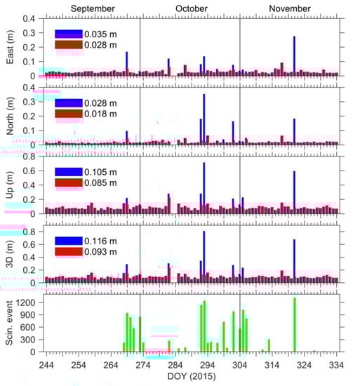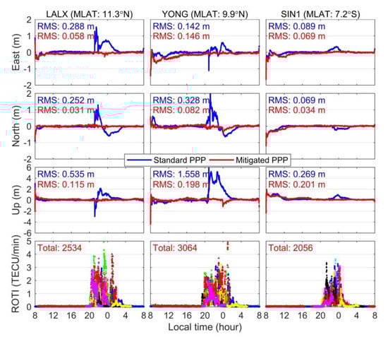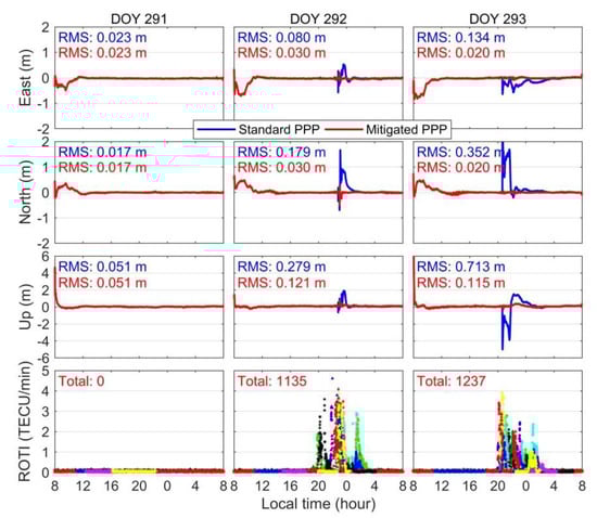 - Zhang, X.; Guo, F.; Zhou, P. Improved precise point positioning in the presence of ionospheric scintillation. GPS Solut. 2014, 18, 51–60. [Google Scholar] [CrossRef]