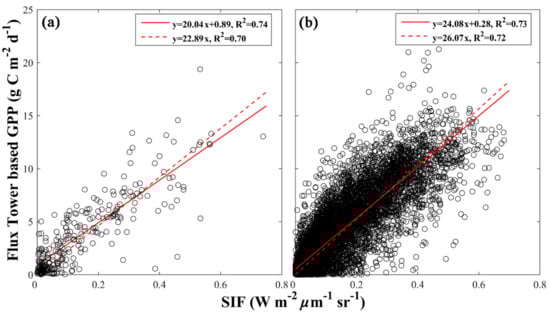 - Li, X.; Xiao, J.; He, B.; Arain, M.A.; Beringer, J.; Desai, A.R.; Emmel, C.; Hollinger, D.Y.; Krasnova, A.; Noe, S.M.; et al. Solar-induced chlorophyll fluorescence is strongly correlated with terrestrial photosynthesis for a wide variety of biomes: First global analysis based on OCO-2 and flux tower observations. Glob. Chang. Biol. 2018, 24, 3990–4008. [Google Scholar] [CrossRef]