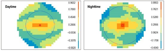 Omnidirectional and directional covariance models were input into the method in this study to calculate the results, and 10,000 points were randomly selected during the day and night for accuracy verification and comparison. The results show that after considering the directionality of the covariance, the accuracy in the daytime is slightly improved, and the accuracy of the night is not improved (Table 3). It is suggested that directionality can be considered during the daytime in the following research.