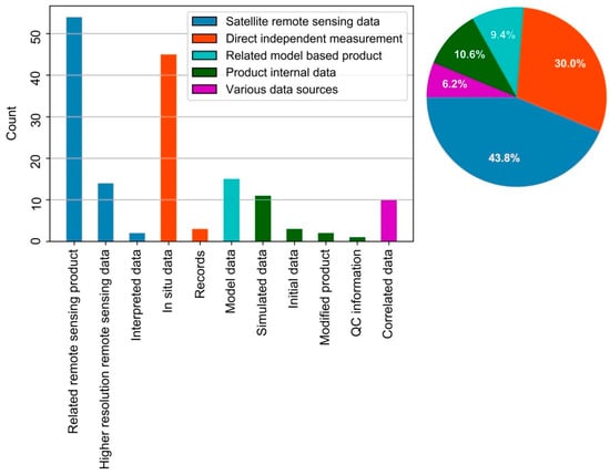 Validation methods can represent complex procedures for the assessment of time-series products. A generalized overview of validation approaches realized in 89 reviewed studies is given in the following subsections. Particular examples are emphasized over standard implementations in order to outline the application spectrum of a category. Since various studies accommodated more than one validation technique, multiple category designations according to context can occur.