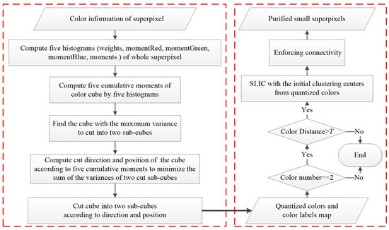 Procedure of the superpixels purification algorithm based on color quantization.