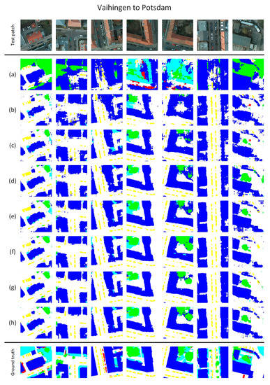 Comparison results based on the domain adaptation from Vaihingen to Potsdam. The best values are in bold.