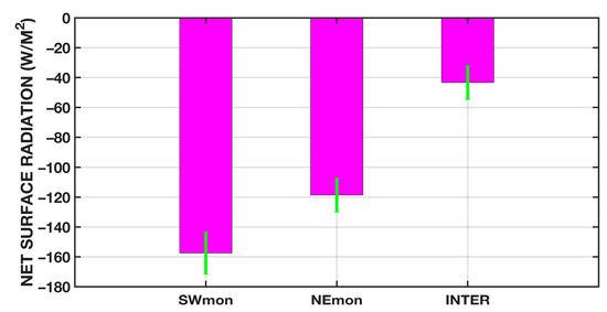 Net surface radiance for the three different seasons (the SW monsoon, the NE monsoon, and the inter-mosoon) at solar noon.