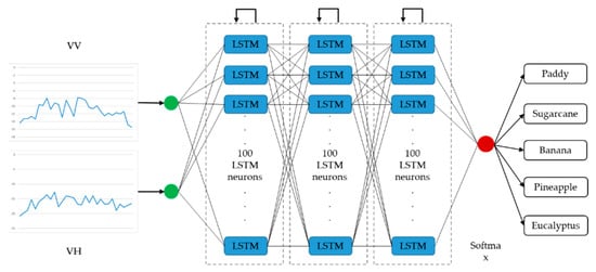 Classical machine learning approaches, such as the random forest (RF) and support vector machine (SVM), are not designed to work with time series data, and they take each time acquired data as an input feature in crop classification tasks [18,19]. Therefore, they ignore the temporal dependency of the time series [20]. Deep learning algorithms have gained momentum in recent years, and have shown unprecedented performance in combining spatial and temporal patterns for crop classification. Different from classical machine learning methods that use the extracted features as input [21], deep learning methods allow a machine to be fed raw data (such as the pixel values of raw imagery) and to automatically discover representations needed for detection or classification at multiple levels [22,23]. For classification tasks, higher-level layers of representation in a network amplify aspects of the input that are important for discrimination and that suppress irrelevant variations [22]. This is very helpful for crop classification because of the complex relations of internal biochemical processes, inherent relations between environmental variables, and variable crop behavior.