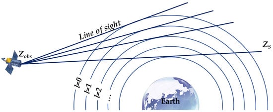 Figure 7 illustrates the construction of the path model in limb-viewing geometry. For the O2 infrared atmospheric band, a strong self-absorption appears because of the relatively large line strength of ground state. Therefore, the limb spectral radiance is not simply a straightforward Abel-type integration of the VER profile along the path between the emitter and the observer. The brightness is modified by the attenuation along the line-of-sight path. In addition, limb brightness measurements unavoidably include Rayleigh scattering and Mie scattering, which will be subject to the extinction process in the O2 infrared atmospheric band spectral region. For accurate calculation of the spectral brightness of the O2 infrared atmospheric band, the absorption for both emission lines and the scattered sunlight continuum background must be taken into consideration, especially at low tangent heights.