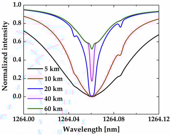 In order to better follow the spectral shape development as a function of tangent height, a close-up of one of these lines (red in Figure 11) is shown in Figure 12 after normalization to the maximum intensity (the asymptotic value). As can be seen, the absorption lines are very broad at tangent heights of 5 and 10 km because of the atmospheric scattering from low altitudes, where collision broadening dominates. At tangent heights higher than 20 km, the whole line shape becomes a superposition of two components: (1) a narrow one, which is sensitive to the atmospheric condition at the tangent point, and (2) a much broader component, which is contributed by the reflection and scattering taking place near the ground and the lower atmosphere.