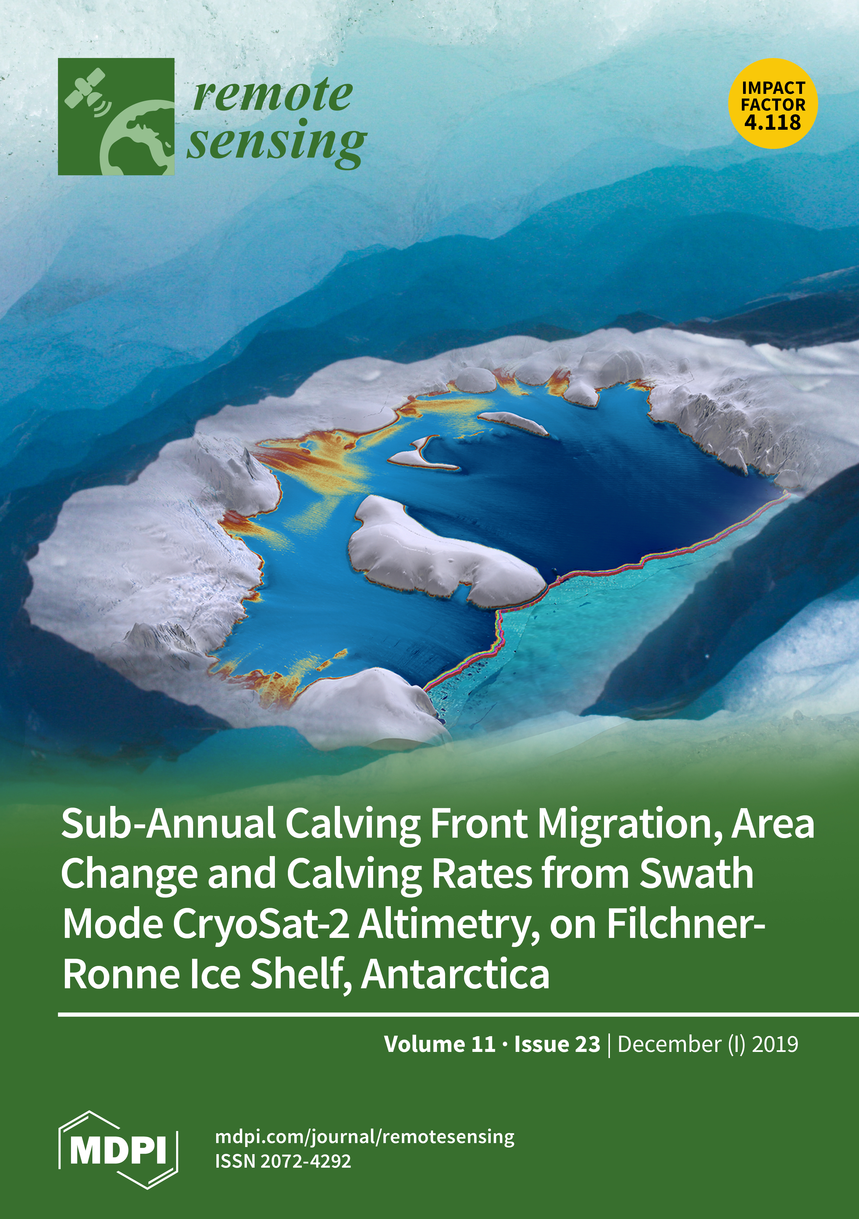 Cover Story: The figure shows an elevation model of the Filchner–Ronne Ice Shelf in Antarctica derived from CryoSat-2 swath altimetry data acquired in 2018. The color coding indicates the surface elevation scaled from 0 to 200 m. The calving front location (CFL) marks the seaward limit of the shelf and is indicated by a series of lines illustrating the gradual advance of the ice shelf in the period 2011–2018 with a 6-month sampling. Mapping the time variable CFL of Antarctic ice shelves is important for estimating the freshwater budget or as a precursor of dynamic instability. Wuite et al. have developed a novel approach for deriving regular and consistent CFLs based on edge detection and vectorization of the sharp ice edge in gridded elevation data, representing a valuable new application for the CryoSat-2 mission that has not been previously exploited.View this paper.
