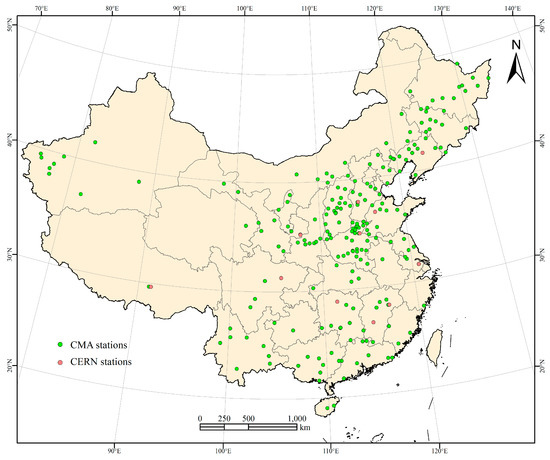 The ground observation data were derived from the China Meteorological Administration (CMA) and the Chinese Ecosystem Research Network (CERN). The data from CMA contains the field records of crop growth and development status observed by China’s agrometeorological stations since September 1991. The specific contents include, among others, crop name, the name of the crop development stage and its date, the anomaly of the development stage, and the degree of the development stage. Supported by the Chinese Academy of Sciences, CERN was established in 1988 to monitor water, soil, atmosphere, biology, energy flow, and other important ecological processes of various ecosystems in China under unified rules. It consists of 16 agriculture ecosystem stations, 11 forest ecosystem stations, three grassland ecosystem stations, and seven desert, ocean, lake, swamp, and urban ecosystem stations and research centers. The ground observation data used in this paper were from CERN farmland ecosystem stations.