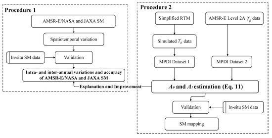 Flow chart of AMSR-E/NASA, JAXA SM product analysis and improving the AMSR-E SM product.
