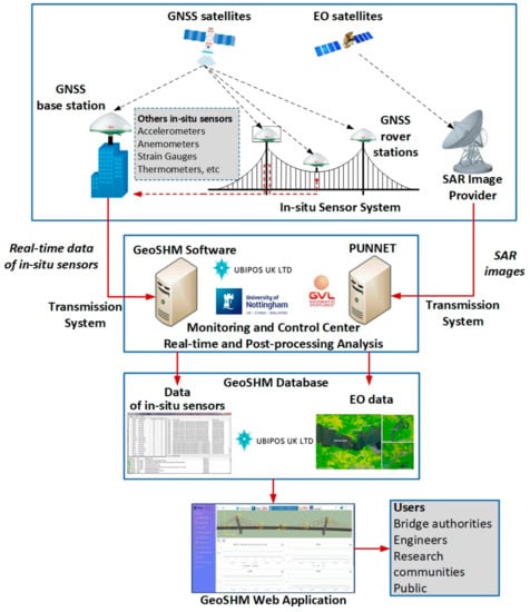 Overall GeoSHM system architecture showing the data flow between the sub-systems.
