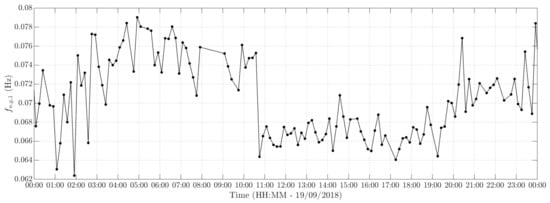 24-h variation of the modal frequency of the first lateral model on 19 September 2018. Data points are joined for better clarification.