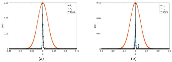 The distribution of corresponding to the 23rd (a) and 57th (b) atom in the dictionary.