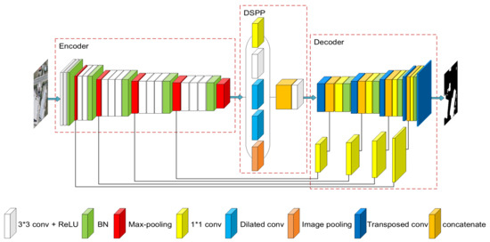 - Chen, L.C.; Zhu, Y.; Papandreou, G.; Schroff, F.; Adam, H. Encoder-decoder with atrous separable convolution for semantic image segmentation. In Proceedings of the European Conference on Computer Vision (ECCV), Munich, Germany, 8–14 September 2018; pp. 801–818. [Google Scholar]