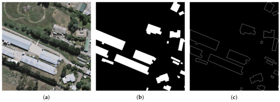 - Bischke, B.; Helber, P.; Folz, J.; Borth, D.; Dengel, A. Multi-task learning for segmentation of building footprints with deep neural networks. In Proceedings of the 2019 IEEE International Conference on Image Processing (ICIP), Taipei, Taiwan, 22–29 September 2019; pp. 1480–1484. [Google Scholar]