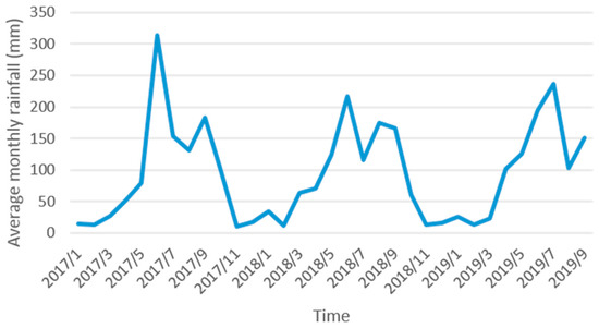 Average monthly rainfall of Bijie from 2017 to 2019.