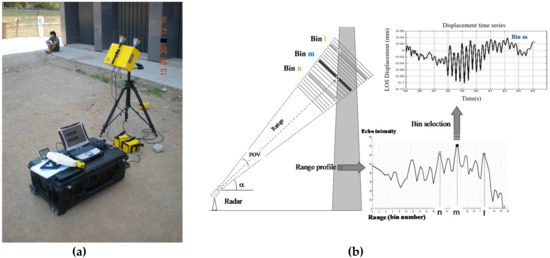 According to the meaning of its acronym RADAR, Radio Detection And Ranging, a radar device is able to detect and range objects. The radar acquires echoes from the different targets contained in its antenna Field Of View (FOV). The amplitude peaks detected at different times correspond to contributions from parts of the observed structure located at different distances. According to the radar equation, the operating distance and the characteristics of the backscattering surface strongly affect the radar response. A radar observation uses the time elapsed between the transmission and reception of an electromagnetic waveform to provide a signal, usually called range profile, composed by peaks of different amplitudes, which identify the main reflecting parts of the observed structure. Points of the range profile are usually called radar bins (Rbin) and they correspond to sampling volumes around targets located at different distances from the radar. The intersection between these elemental solid angle units and the surface of the monitored structure, in which the transmitted waves are backscattered, determines the capability to sample unambiguously the monitored structure, with separated elements. The measurement procedure consists of three main steps. First, the amplitude profile as a function of the range, sampled at regular spatial steps, is collected. Afterwards, when the intensity of the radar echo coming from these elements assures an adequate Signal-to-Noise Ratio (SNR), the corresponding part of the structure can be associated to the interferometric phase of the echo; third and last, a displacement time history is derived by the time variations of the phase, by using the following equation: