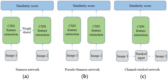 - Han, X.F.; Leung, T.; Jia, Y.Q.; Sukthankar, R.; Berg, A.C. MatchNet: Unifying feature and metric learning for patch-based matching. In Proceedings of the 2015 IEEE Conference on Computer Vision and Pattern Recognition (CVPR), Boston, MA, USA, 7–12 June 2015; pp. 3279–3286. [Google Scholar]