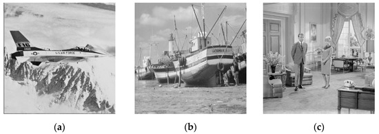 Images used in the synthetic experiments. (a) Airplane. (b) Ship. (c) Couple. (d) Flowers. (e) Bridge. (f) Foreman.