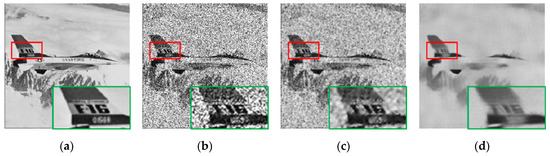 Despeckling results of different methods for image “Airplane” with noise level L = 1. (a) Original image. (b) Speckled image. (c) Lee. (d) Probabilistic patch-based (PPB). (e) Synthetic aperture radar (SAR)-BM3D. (f) SAR-DRN. (g) HDRANet.