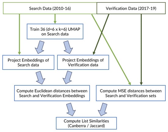 Workflow of the model development for the UMAP training and verification. The same workflow is used for training and verification of the principal component analysis (PCA), which is used as a comparison method.