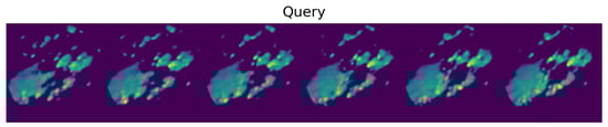 The figures show the plot of the average MSE error between the query sequences and the top sequences for each i-th analog in the ranked list. The results are consistent with the performance on single images: the 5-component UMAP consistently outperforms 5-component PCA on all T by a wide margin. The UMAP results are actually on par with 20-component PCA, where UMAP accounts for slightly higher MSE error for and an lower for and . Results of the top two most similar sequences found given a query sample (Figure 17) of radar scans are shown for the three compared methods: using MSE on the original scans (Figure 18) and using MASS and MSE-based reordering on the top-500 closer embeddings on PCA (Figure 19), and on UMAP (Figure 20) embeddings.