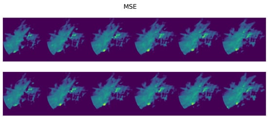 To assess the improvement in analog retrieval, given by using sequence of images instead of extending in time the results from single frame search, we computed, for the 1226 sequences used in Section 3.3, the average MSE score difference between the queries and the top-50 results at and considering the whole sequence or only the first image for the match: we found that using sequences to query reduces the average MSE of the analogs by 4.6% and 10.9% for and respectively. Figure A15 shows an example of this behavior: a longer query helps to better match the evolution of the precipitation patterns.