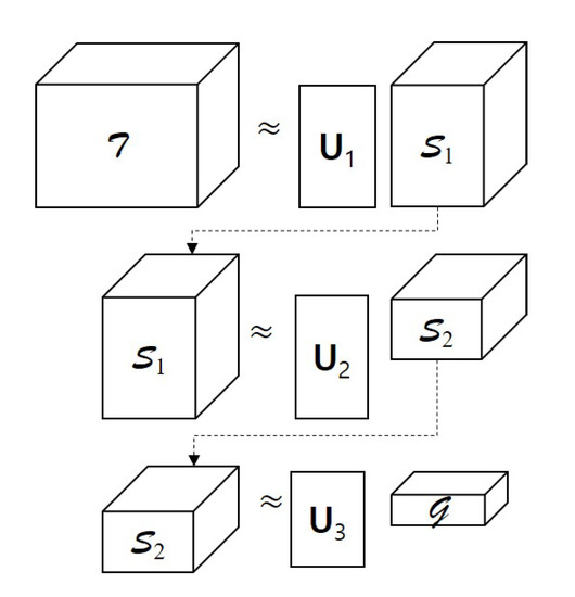 where represents an orthogonal factor matrix along mode-n, is the appropriate truncation level or n-multilinear rank, and denotes the core tensor. Then, we rewrite the formulation of the optimization problem of finding and in (3) as