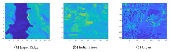 - Urban: Urban dataset was recorded by a hyperspectral digital image collection experiment (HYDICE) sensor; its location is an urban area at Copperas Cove in Texas. The spatial size of the dataset is with 221 channels, in which its quantized spectral range is from 400 nm to 2500 nm. There are four endmembers to be classified; namely, “asphalt,” “grass,” “tree,” and “roof.” More information about Urban dataset is provided in [21].