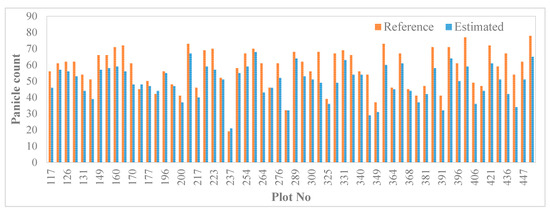 Panicle count estimation. Reference versus estimated panicle counts.