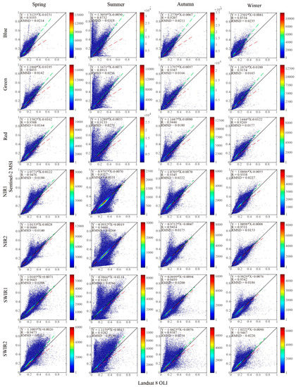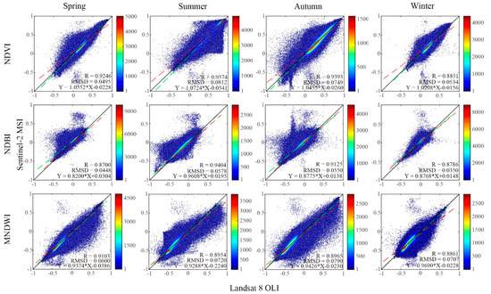 4.1. Analysis on the Consistency of Bands and Indices Between OLI and MSI