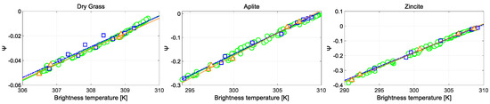 As is shown in (14), the left side of the equation is the function of ε λ and γ , while the right side is only determined by T b i λ . Following the first-order Taylor series approximation, the right side can be linearized around the ground temperature T G r o u n d :