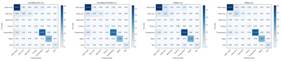Percentage based confusion matrix to evaluate the per-point consistency of 3D segmentation result of Osaka dataset; corresponding non-normalized confusion matrix attached in Appendix A (Figure A7).