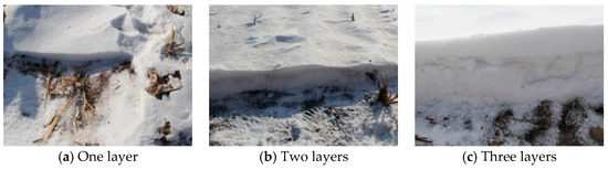 During the snowy season, new snowfalls continue to cover previous snowfalls, resulting in a gradual stratification of snow. Based on the field measurements in farmland, it was found that snow cover could be divided into three-layered snowpacks (
