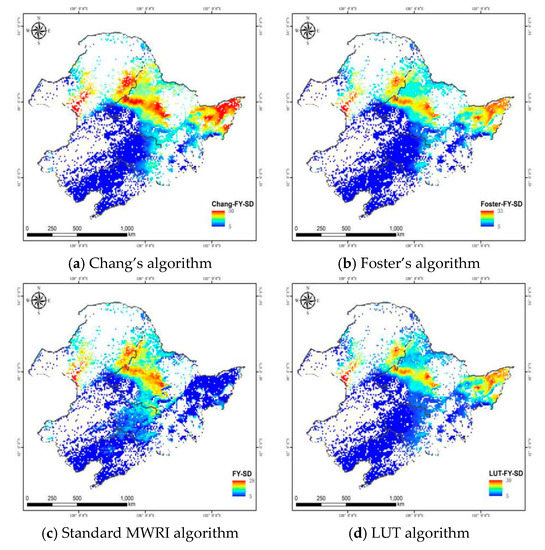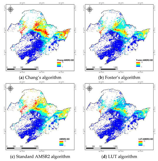 Snow temperature influences the retrieval of the SD to some extent. Generally, snow cover has a thermal insulation effect on the ground. The deeper the snow cover, the more obvious the thermal insulation effect [