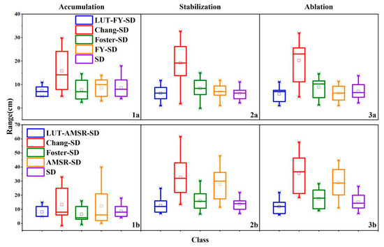 Figure 4). SD and snow stratification mostly satisfied the following relationships: when SD was less than 7 cm, snow cover was not stratified and defined as one layer; when SD was 8–15 cm, snow cover was characterized as two layers, and the thickness of upper and bottom layer were assumed to be equal; when the actual SD exceeded 15 cm, the snow cover was divided into three layers. For the three-layer snowpacks, the same thickness was assumed for the upper and bottom snow layers. In the snow field measurements, it was found that the SD in Northeast China was never more than 50 cm, so an SD over 50 cm was not considered in this study.