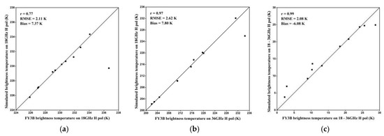Section 5.3.3, generally, the root mean square error (RMSE) and Bias of the channel difference was lower and correlation was higher than those of the individual channels. As a result, the corresponding empirical coefficients fitted to simulate the channel difference for MWRI and AMSR2 in each period were retrieved using Equation (9) and are listed in