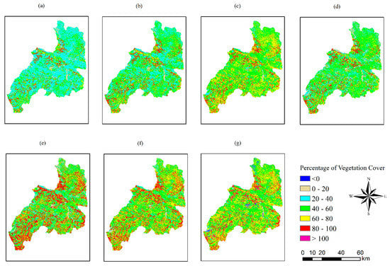 It has to be pointed out that compared with finer spatial resolution images, such as those from Sentinel 2, using the 30 m × 30 m resolution Landsat images in this study increased the number of mixed pixels. This method is, thus, prone to estimation errors of PVC due to the mixed pixels. On the other hand, using 10 m × 10 m spatial resolution Sentinel 2 images would reduce the number of mixed pixels, and thus the estimation error of PVC due to mixed pixels. Compared with Landsat images, however, using Sentinel 2 images would result in a nine-fold increase of data and computation intensity. This indicates a trade-off. China has a desertification land area of about 4,354,800 km2. Annually providing the decision-makers with information related to land desertification dynamics at the national scale is necessary. Because of the large area, limited budget, and requirement for fast acquisition and analysis of data, developing a cost-effective method to map PVC for the whole desertification area of China is critical. Various spatial resolution satellite images should be analyzed for their cost-effectiveness. This study could be regarded as a pilot study for a larger research project. In the future, a comparison of the uses of Landsat and Sentinel images in terms of accuracy and cost-effectiveness is needed.