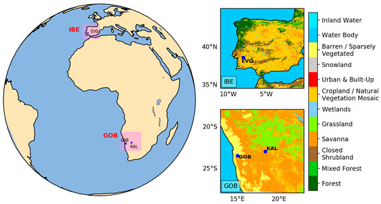 Land surface temperature (LST) translates the response of land surface to environmental factors and constrains the energy exchanges at the land–atmosphere interface [1,2,3]. It is an essential variable for computing longwave surface-emitted radiation, as well as for estimating turbulent fluxes of latent and sensible heat; in some regions, the amplitude of the diurnal cycle of LST is strongly correlated to soil moisture [4,5]. One of the benefits of LST is that it may be observed by remote sensors on-board polar orbiting and geostationary platforms, ensuring global coverage with very good temporal sampling, especially in the case of geostationary platforms [6]. The availability of long-term satellite data records is now providing unique opportunities to derive climate-related information from satellite-derived LST, particularly its diurnal cycle, and in regions with sparse surface station data coverage. This motivated the inclusion of LST in the list of essential climate variables [7], which underlines its relevance for climate applications. In an attempt to increase the use of LST for climate-related studies, Good [8] explored relationships of LST and near-surface (2 m) air temperature over a number of standard weather stations worldwide. LST is also useful for assessing and improving parameters in surface schemes of numerical weather prediction (NWP) and Earth system models to provide more accurate surface and near-surface diagnostics [9,10,11]. It has been recognized that land surface models often struggle to correctly represent clear sky skin temperature (), particularly regarding its diurnal amplitude over arid and semi-arid regions with an underestimation of daytime and a small overestimation of night–time values [10,11,12,13]. Johannsen et al. [11] showed that inaccuracies in the representation of vegetation cover could largely explain the biases observed over the Iberian Peninsula. However, it is unclear if other factors could be contributing to the observed bias. Alternative causes include: 1) a misrepresentation of surface processes and land-atmosphere interactions in surface schemes and 2) inaccuracies in the main forcing variables and surface parameters (e.g. radiative fluxes and soil moisture).