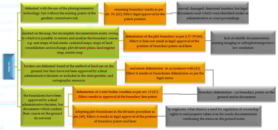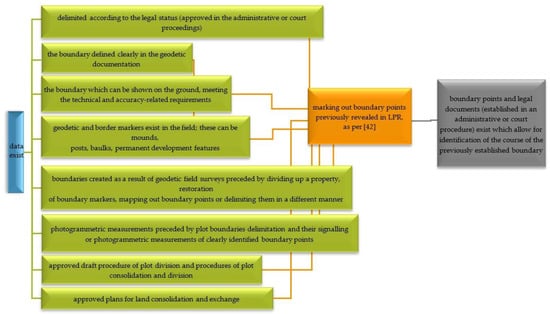 Administrative-legal procedures leading to the plot boundary delimitation when data exist. Source: Own study on [,,,,].