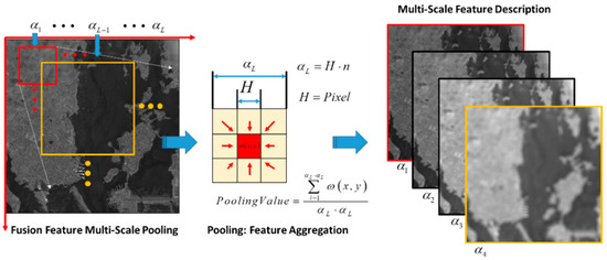Fusion feature multi-scale pooling process. means different scale factors which are the sizes of pooling operation; H represents a pixel in pooling area.