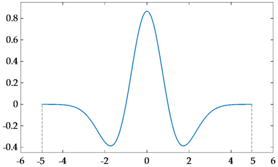 The shape of the leaf reflectance spectrum is similar to a Gaussian or quasi-Gaussian function, or a composition of several Gaussian functions [57]. Based on the suggestion of Torrence et al. [58], the second order derivative of Gaussian (namely the ‘Mexican Hat’, “mexh”) was chosen as the mother wavelet function (Figure 3). The ”mexh” function has symmetry and its mean power is zero [59]. Moreover, the ”mexh” function has an infinite support width of (–5s, 5s) () and its effective basic support range is (–5, 5) [60].