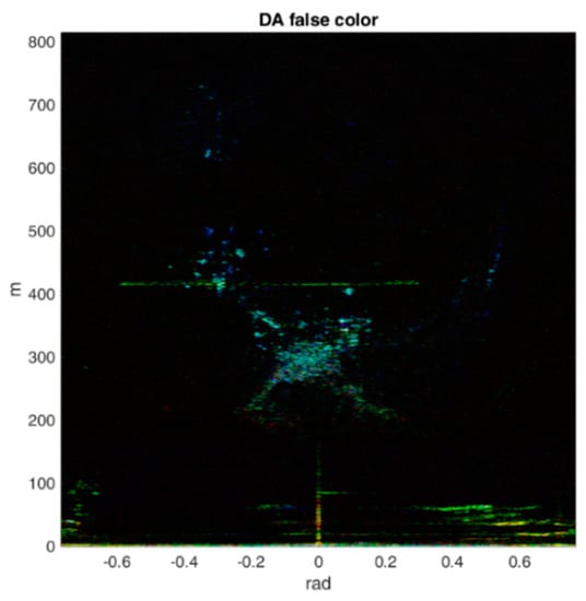 DA false colour map code: Red = RR, Green = RL, blue = VV.