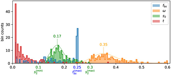 - The range of the parameter is constrained by ensuring that the resulting range of N remains physically plausible. Reported estimates of vertically polarized directional emissivity at similar frequencies [32,33,34] (which can be related to the directional hemispherical reflectivity via Kirchhoffs law [35] ) suggest a range of . Based on the reference-dataset, the range for is set to , and therefore the boundaries for within the fit-procedure were set to .