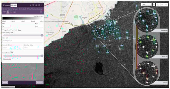 The experimental results presented in Section 3 demonstrated the effectiveness of the INSURE system and the advantages of using satellite Earth observation data, combined with AIS data to monitor vessel activity in the Ghanaian EEZ. The distribution of vessels within the EEZ, shown in Figure 11 and Figure 16, is related to the freight transport and fishing activities occurring within adjacent waters. In addition, a small proportion of vessels operating in the region can also be related to activities in the upstream and downstream sectors of the oil and gas industry.