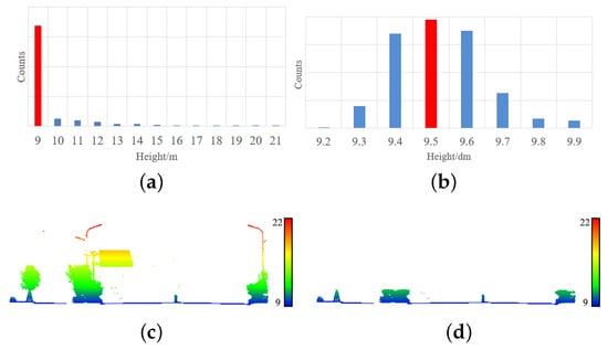 - Road-surface extraction: After the point cloud is gridded, the sudden change in the normal vector is used to locate the curb grids on both sides of the trajectory. Road edges are fitted by the curb grids and used to segment the road points. The inconsistency of the reflective intensity of the road points is corrected to facilitate the subsequent lane extraction.