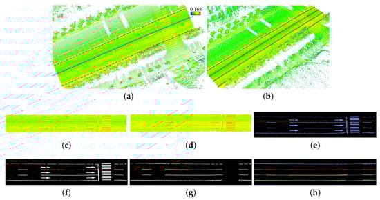 - Yu, Y.; Li, J.; Guan, H.; Jia, F.; Wang, C. Learning Hierarchical Features for Automated Extraction of Road Markings From 3-D Mobile LiDAR Point Clouds. IEEE J. Sel. Top. Appl. Earth Obs. Remote Sens. 2015, 8, 709–726. [Google Scholar] [CrossRef]