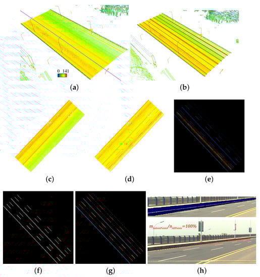 - Kumar, P.; McElhinney, C.P.; Lewis, P.; McCarthy, T. Automated road markings extraction from mobile laser scanning data. Int. J. Appl. Earth Obs. Geoinf. 2014, 32, 125–137. [Google Scholar] [CrossRef]